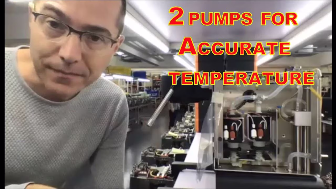 2 pumps for accurate temperature : John shows how the "water mixing" system in the DE1 works, with superheated (110ºC) water in one path, mixing with room temperature water.