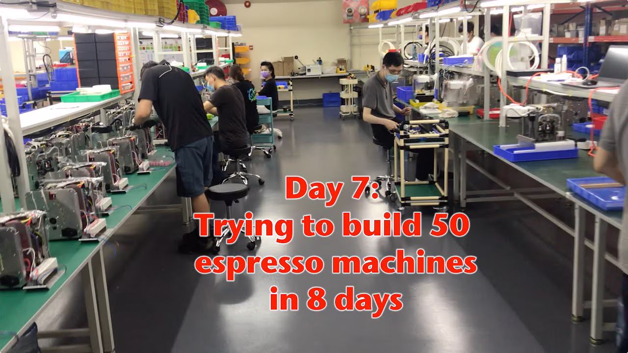 I'm very proud of my Hong Kong team, for managing to build 50 machines in 8 days. We're on day 7 and set to finish these tomorrow. This is 60% faster than we've ever built machines before. We just started with a brand new system where they work in teams of two. One is the "master" of a single object and task, and the other is their apprentice. On the right hand side, you can see another team preparing 50 chassis so that we can start building another 50 machines on the second assembly line, just as soon as we finish the first.