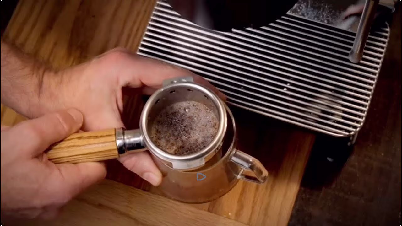 Flush the group head (using the Decent "Dimples" shower screen, which has 50 small protrusions to ensure even water distribution).