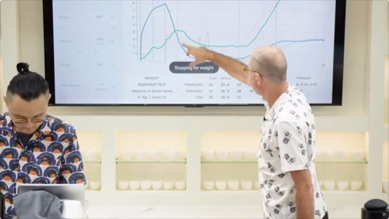 In yesterday's Decent Factory Livestream Mark and John demonstrated how the Decent Espresso machine can now tolerate you fiddling your cup even while using the "stop at weight" scale feature